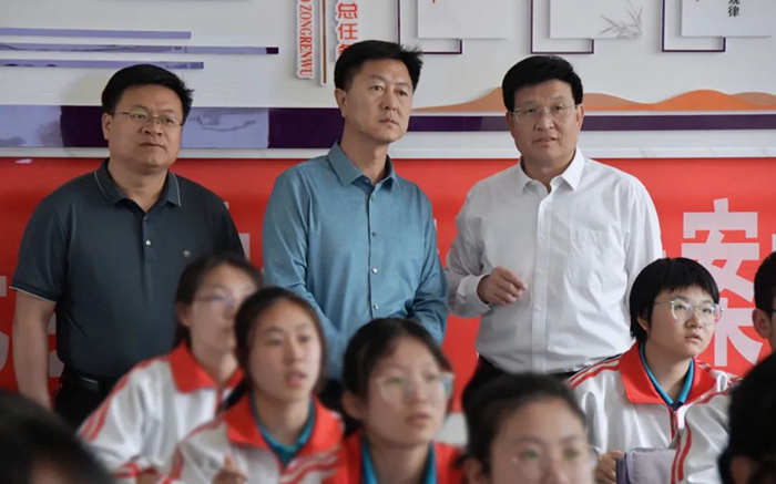 (静一中讯)5月15日下午,平凉市教育局党组书记、局长杨静伟莅临我校督导调研,市教育局副局长柳红星,市教科所所长陈振念,市教育局基教科负责人程翔,县教育局党组书记、局长张录牛陪同调研。督导组一行围绕学校校园文化建设、双师授课、高考备考、心理咨询中心使用情况等教育教学状况,对我校教育教学工作全面把脉,给予精准、深入的指导。