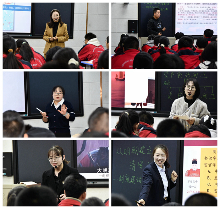 每节课后,无论是听课学生还是我校青年教师都反馈热烈:学生表示“历史课能主动思考、参与探究,对‘从明初到清军入关’这段历史的理解更深刻了”;青年教师则提到“从参赛教师的课堂设计中,学到了如何将‘新课堂’理念融入具体课题,对自己优化教学方法很有启发”。这种“教师引导、学生主导、同行学习”的多维互动模式,正是“新课堂”建设的生动体现。