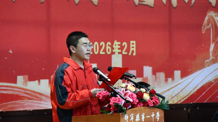 努力翻越阻挡自己的围墙,去怀抱真正属于自己的光。马对兵先生在发言中,首先代表全体家长向静宁一中的校领导和全体高三教师致以敬意与感谢,感恩学校的悉心培育和老师们三年来的辛勤付出、全程护航。他为孩子们在备考路上的拼搏与成长倍感欣慰,勉励学子们珍惜百日冲刺的关键时光,坚定决心、脚踏实地、勇往直前,将压力化为动力,以良好的身心状态迎接高考挑战,坚信百日时光足以创造奇迹。同时他告诉孩子们,冲刺路上并非孤军奋战,学校、老师和父母都是他们最坚实的后盾,父母的爱无关分数与成败。此外,他代表全体家长郑重承诺,后续会做好后勤保障、营造安稳环境,多理解鼓励、少焦虑指责,做孩子情绪的缓冲垫和奋斗的同行者,全力为孩子们的高考冲刺保驾护航。最后,他用经典格言与学子共勉,祝愿学子金榜题名、老师工作顺利,更祝愿静宁一中蒸蒸日上。